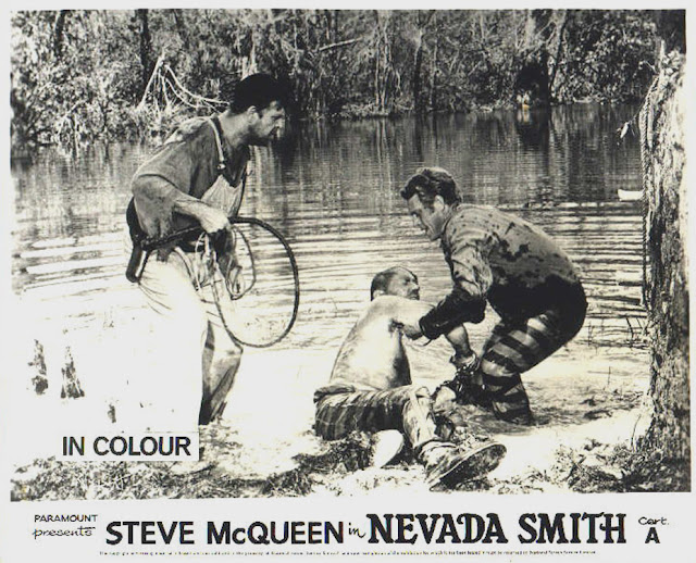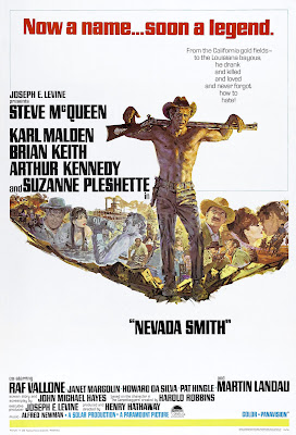 Steve McQueen começou a sua carreira pela televisão onde durante a década de 50 participou em variadissimas séries. Data de 1958 a primeira vez que o seu nome aparece creditado no cinema - nos filmes “Never Love A Stranger” e “The Blob” - este último hoje em dia considerado um filme de culto da ficção científica. Dois anos depois é o grande salto para o estrelato ao interpretar um dos sete magníficos (“The Magnificent Seven”, de John Sturges). Segue-se o seu período áureo, coincidente com a maioria dos anos 60, onde filmes como “The Great Escape” (1963), “The Cincinnati Kid” (1965), “The Sand Pebbles” (1966) ou “Bullitt” (1968), o colocam definitivamente na galeria dos actores mais amados do seu tempo. Pessoalmente só em 1967 vi pela primeira vez um filme deste lendário actor americano. Precisamente este “Nevada Smith”, estreado no ano anterior. A partir dessa altura também eu me tornei um fan incondicional de McQueen (e quem o não era naqueles anos?), tendo acompanhado todos os seus filmes até à sua morte prematura a 7 de Novembro de 1980, ano em que completou meio século de existência.